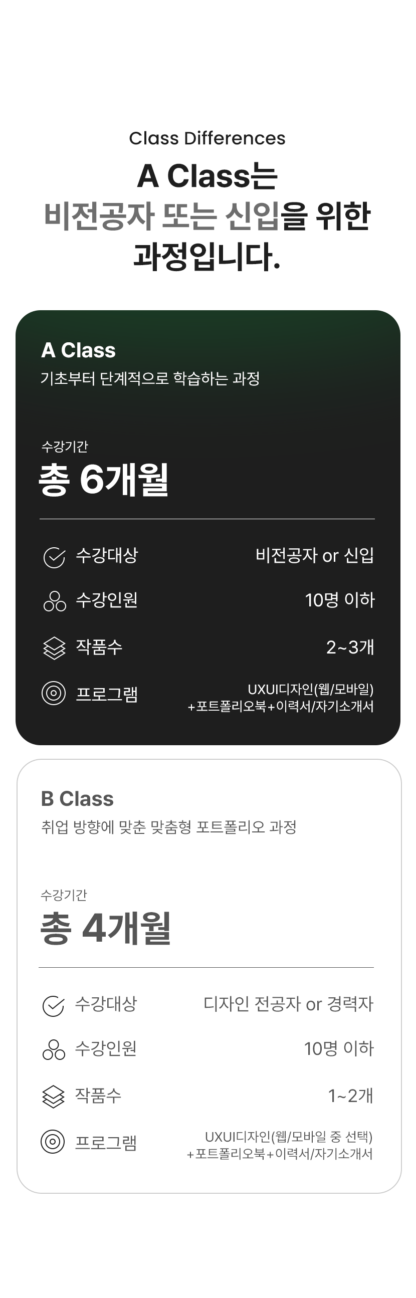소규모 클래스 운영으로 학생 개개인에게 집중할 수 있으며, 1:1 피드백을 통해 디자인 작업의 완성도를 높일 수 있습니다.
